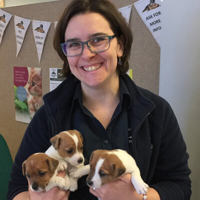 Her favourite part of her job is running puppy classes, and helping worried dogs overcome their fear of the vets.
